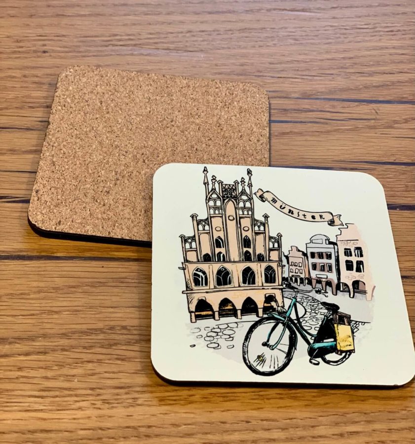 Untersetzer mit Münster Motiven aus unserem Memo Münsterland. Auf der Rückseite des Untersetzers befindet sich Kork.